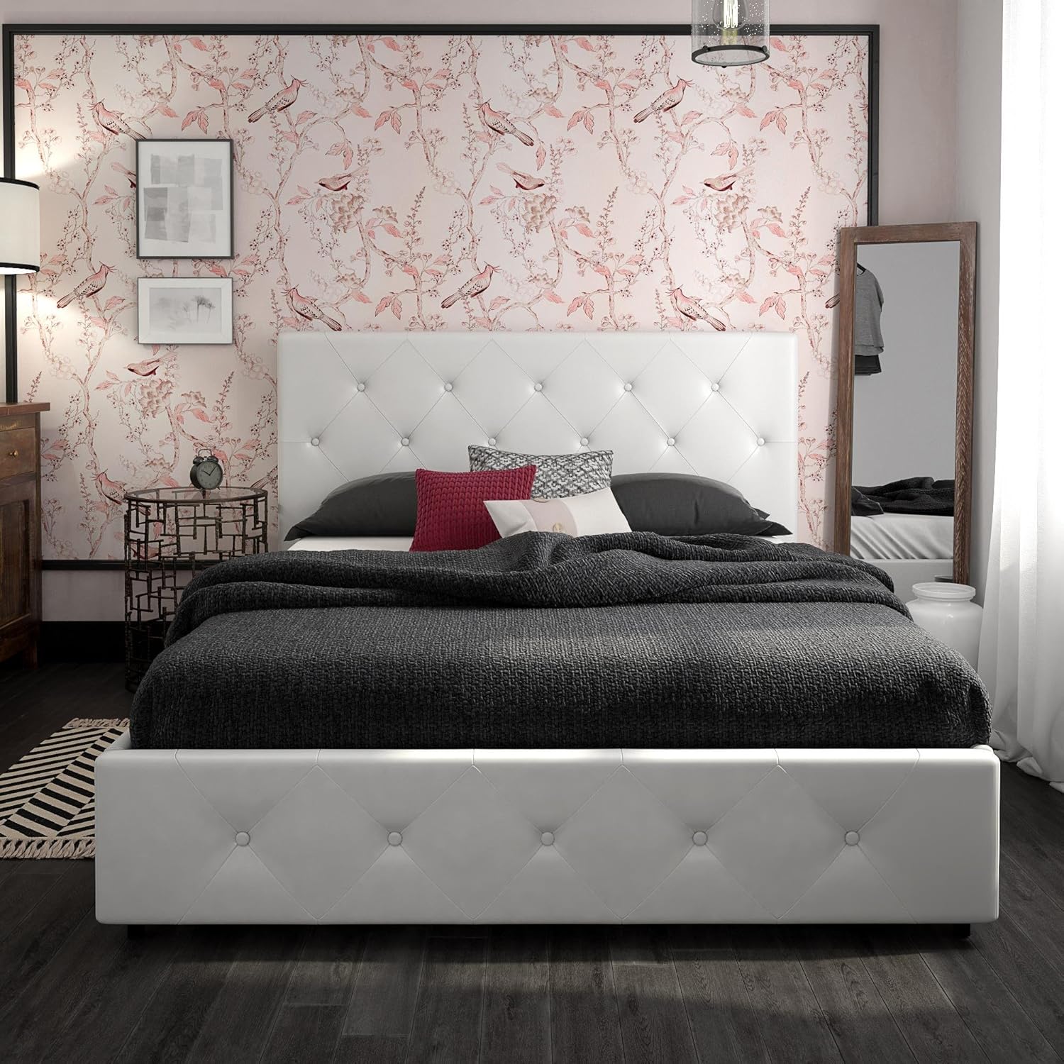 It's been estimated that people spend over 25 years of their life in bed (and another 7 just trying to fall asleep!) so there's plenty of incentive to find one you'll look forward to at the end of each day. This contemporary and chic bed frame is designed with graceful button tufted diamond patterns on both the headboard and footboard and upholstered in faux leather. Dorel dhp dakota upholstered platform bed with storage drawers, black faux leather, queen. With wooden slats to support the mattress, no box spring is needed, giving you the low profile look you love. Dhp dakota upholstered platform bed, queen size frame, white. This contemporary and chic bed frame is designed with graceful button tufted diamond patterns on both the headboard and footboard and upholstered in faux leather. The dhp dakota upholstered bed will be the focal point of your bedroom. Upholstered in a faux leath Give yourself the bed you deserve! The frame is made with sturdy wood and includes a sturdy wooden. On sale for $599.99 original price $779.00 $ 599.99 $779.00. Give yourself the bed you deserve! The dhp dakota upholstered platform bed is the perfect amount of contemporary luxury to transform your bedroom décor.